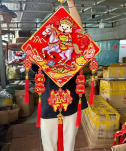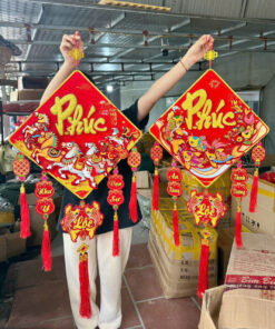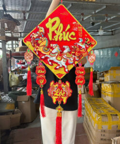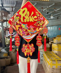 Màu sắc đỏ – vàng nổi bật, mang không khí Tết truyền thống, phù hợp trang trí nhiều không gian khác nhau.